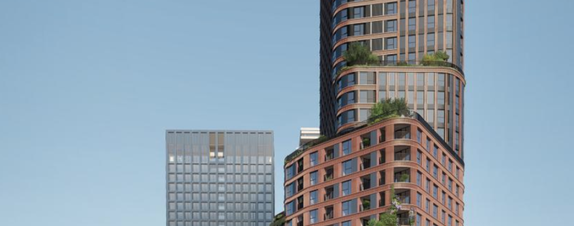 De Brinktoren in Amsterdam-Noord is een circulair en inclusief wooncomplex van 90 meter hoog dat met 400 woningen een diversiteit aan bewoners aantrekt. Deze markante toren zal opvallen door zijn opvallende duurzame kenmerken, zoals energieopwekking en veel groene ruimtes, waardoor het een levendige en groene verticale buurt zal worden die gericht is op sociale cohesie.