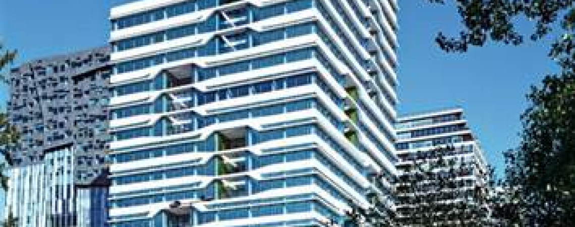 Het gebouw wordt naarmate het hoger wordt in enkele stappen smaller. In de zijkanten zijn inwendige balkons gemaakt, die elk een eigen kleur hebben. De witte randen op het gebouw zijn een bescherming tegen direct zonlicht. Deze randen, van aluminium, zijn ontworpen volgens de principes van het Moiré-effect.